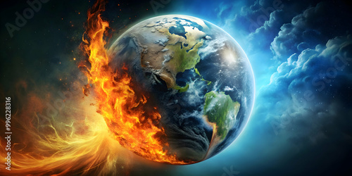Earth and fire elements coming together to create a beautiful natural landscape, nature, environment, elements, earth, fire, heat