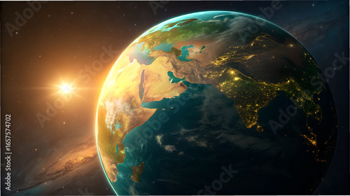 earth, planet, space, universe, cosmos, galaxy, star, sun, sunrise, dawn, light, illumination, glow, bright, shining, orbit, atmosphere, cloud, continent, ocean, water, blue, green, brown, light, city lights, night, darkness, civilisation, global, earth, view, perspective, outer space, astronomy, science, exploration, future, hope, beauty, majestic, epic, background, wallpaper