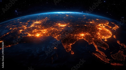 space, night, illuminated, planet, city lights, aerial view, global, earth, population, energy, technology, interconnected, science, geography, astronomy, orbit, cosmos, universe, dark, star, atmospheric, urbanisation, development, progress, connected, landscape, environment, aerial, map, futuristic, detailed, bright, glowing, dark background, perspective, wide view, civilisation, overview, modern, earth, asia, research, laboratory, experiment, physics, biology