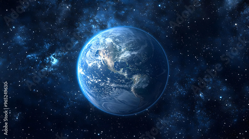 Earth From Space Blue Planet Against Starry Night Sky