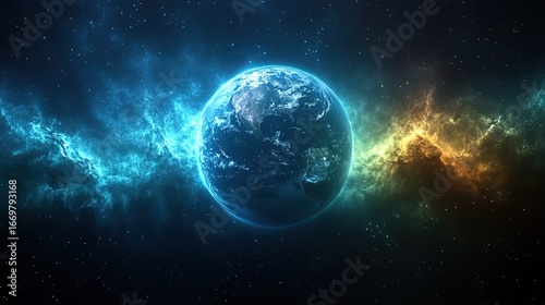 Earth Surrounded by Cosmic Nebulas in Space