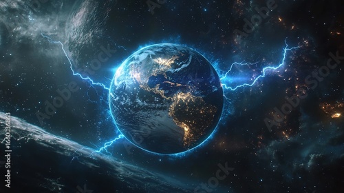universe, starry sky, earth, lightning, nebula, space, scene, galaxy, celestial bodies, blue, energy, unknown, exploration, cosmology, science, astronomy, vision, shock, nature, interstellar, fantasy, futuristic, space exploration, astrophysics