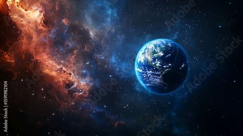 Earth View From Space with Starry Nebula Background Illustration