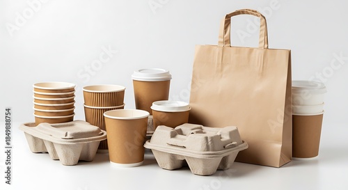 coffee cup, paper bag, cardboard box, sustainable, recyclable, brown, disposable, take-out, hot drink, beverage, container, serving, environment, earth, nature, product, material, reusing, waste