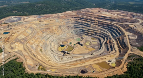 mining, quarry, excavation, pit, mine, earth, sand, gravel, rock, extraction, ore, resource, geology, landscape, terrain, industrial, heavy, machinery, construction, deforestation, environment, impact, degradation, depletion, erosion, dust, sediment, reclamation