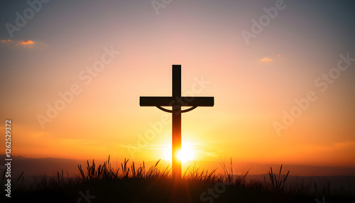 easter, ascension, day, concept, silhouette, of, shining, cross, on, sunset, sunrise, background, banner, copy, space, church, worship, faith, symbol, gate, to, heaven, eternal, life, soul, christianity, gospel, diffused, lighting, religion, sky, jesus christ, god, crucifix, religious, catholic, resurrection, crucifiction, light, holy, sun, cloud, spiritual, cross, belief