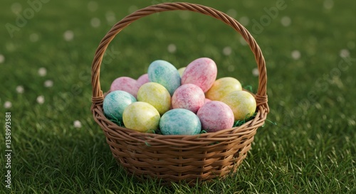 easter, egg, basket, wicker, spring, holiday, colourful, painted, decorated, pastel, natural, grass, springtime, gift, celebration, design