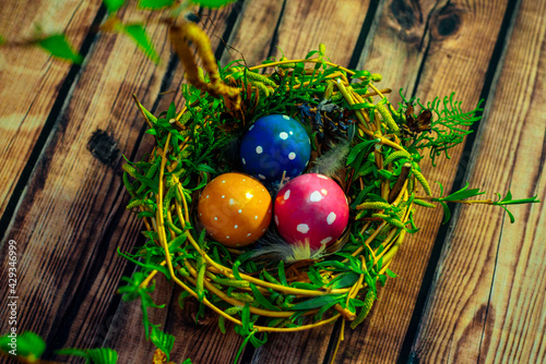 holiday, pass, sunday, easter egg, egg, egg, nest, food, easter, colourful, yellow, chicken, decoration, greenery, grass, brown, tree, ball, ornament, red, christmas, green, tree branch, winter, pine, spruce, season, gaud, decorative, white, decoration, tradition, festive, seasonal, thuja, photo, celebration, bird, traditional