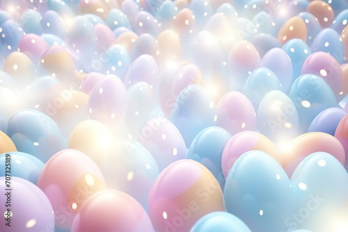 Easter festive background, Sea of glowing pastel Easter eggs, holiday event promotions banner frame for text.