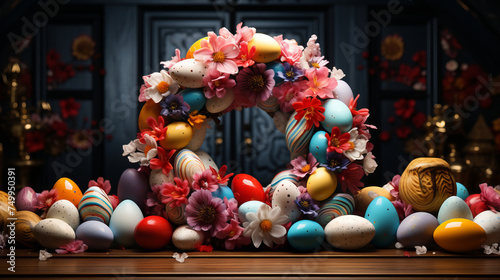 easter, greeting, card, design, chaplet, festive, holiday, spring, flower, egg, decor, decoration, celebration, happy, seasonal, message, wishes, arrangement, door, illustration, colourful, cute, joyful, celebrate, decorated, elegant, cheerful, artistic, creative, colours, dark, vibrant, sentiment, joy