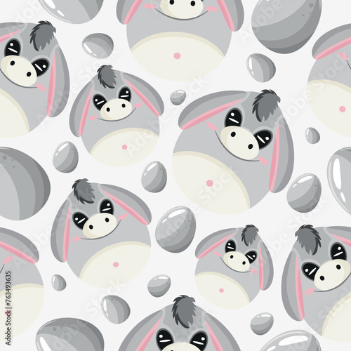 Easter seamless pattern with decorated eggs with gray donkeys and gray eggs for holiday posters, textiles or packaging