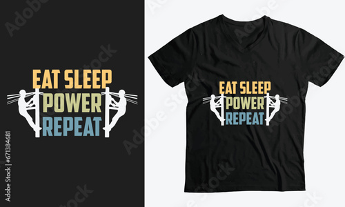 Eat sleep Power Repeat lineman funny t-shirt