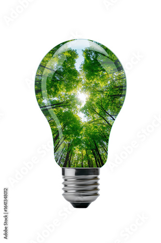 Eco-Friendly Energy Solution: Green Forest Reflected in a Lightbulb Idea Concept