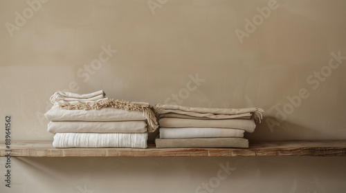 sustainable, fashion, earth, tone, fabric, minimalist, setup, clothing, display, wooden, shelf, folded, clothes, attire, neutral, background, serene, atmosphere, mindful, choice, lifestyle, green, trend, natural, textile, organic, garment, made, design, living, conscious, consumerism, style, aesthetic, material, environmentally, friendly, clothes rack