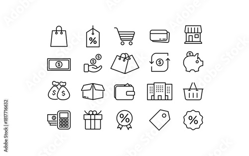 Ecommerce icon set in thin line design with editable stroke - minimalist vector collection