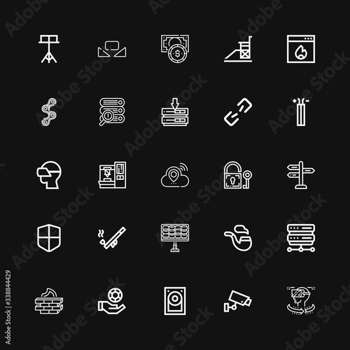 system, icon, set, vector, cctv, hard, disc, chips, firewall, server, pipe, solar, panel, padlock, cloud, robot, arm, goggles, wire, broken, link, chain, vigilance, chips, racked, signs, symbol, design, technology, illustration, isolated, line, web, business, flat, element, network, security, graphic