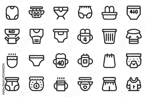 Editable stroke outline icons set of diaper features isolated on transparent background