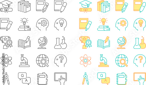 education, icon, vector, editable, stroke, outline, illustration, signs, symbol, isolated, design, background, graphic, teaching, online, class, teacher, learning, university, student, brain, website, digital, chemistry, academy, course, degree, crayons, pen, book, notebook, idea, marker, trophy, write, read, global, science, atom, microscope, cyberspace, question, divider, answer, touch, tablet, draw, minimal, set