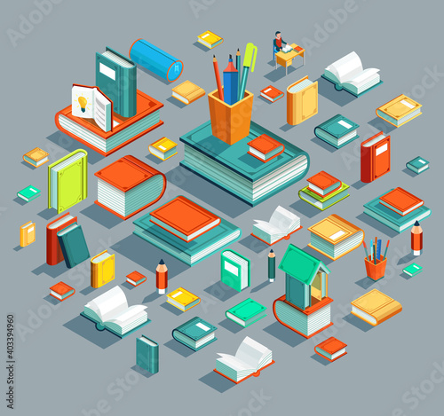 classroom, school, education, book, three-dimensional, isometric, flat, design, computer, conceptual, people, concept, science, cognition, e-learning, study, student, read, pupil, library, mobile, online, literature, textbook, bookshelf, illustration, process, info, business, brain, banner, university, graphic, idea, background, icon, marketing, digital, abstract, reading, learning, infographic, technology, web, creative, three-dimensional, tablet