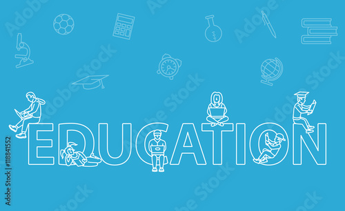 Education. Users are located near letters. vector illustration