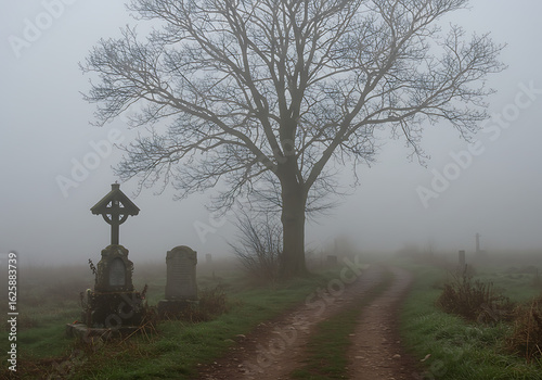 fog, cemetery, cemetery, mysterious, melancholy, eerie, haunting, gravestone, misty, desolate, gloomy, cross, old, path, solitude, skittish, atmospheric, forgotten, silence, timeless, grim, wilderness, ghost, supernatural, dark, abandoned, death, tree, landscape, nature, tree, winter, sky, forest, spring, park, road, autumn, blue, grass, mist, morning, snow, tree branch