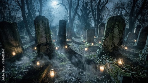 cemetery, cemetery, night, skittish, eerie, fog, mist, moonlight, gravestone, gravestone, old, ancient, overgrown, dark, candle, solemn, mysterious, horror, halloween, death, burial, moss, history, religious, tradition, spiritual, solemnity, remembrance, memorial, forest, tree, branch, gloomy, dramatic, atmosphere, mood, abandoned, forgotten, creepy, haunted, october, twilight, nature, outdoors, illuminated