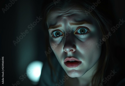 people, clear, blurred, female, perspiring, portrait, scared, dark, face, point, panicked, photorealistic, frightened, sharp, scarey, gradient, anxiety, pale, tension, light, body, glow, portrait, eerie, copy, fear, atmosphere, main, space, eye, human, partial, room, attention, wide