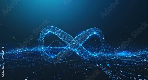 Eervisor of data visualization, infinity symbol made from dots and lines, dark blue background, data science theme, infinity sign, infinite technology concept
