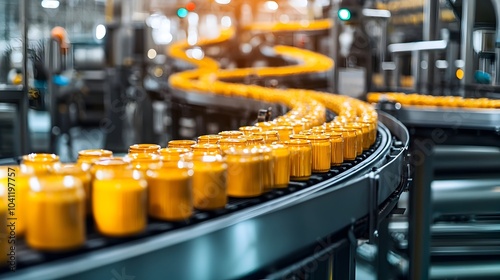 Efficient Food Processing Plant with Automated Conveyor Belts Moving Packaged Goods