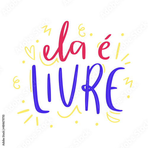 Ela é livre. she is free. Brazilian portuguese expression lettering.