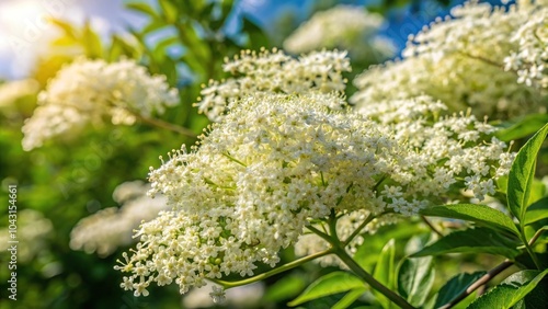 Elderflower bush covered in clusters of blossom in spring