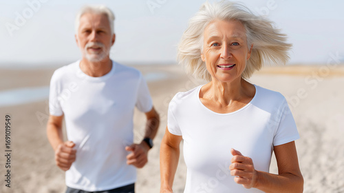 elderly, caucasian, couple, jogging, beach, white, athletic, wear, male, female, active, fitness, family, human relationships, friends, love, exercise, health, outdoors, running, senior, lifestyle, ocean, sand, smiling, mature, sunny, vacation, happiness, energy, wellness, retirement, activewear, harmony, vitality, freedom, nature, coastline, sea, togetherness, leisure, horizon, athleticism, movement, joyful, ageing, relaxation, companionship, fun