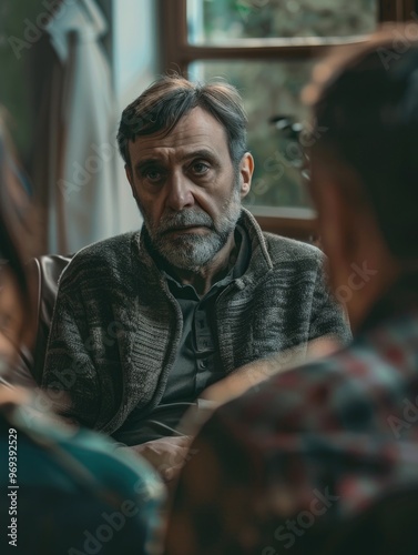 elder, family, gathering, contemplative, mood, emotional, wisdom, heritage, senior, moment, ageing, generational, empathy, listening, ear, heartfelt, bonding, life, life events, home, setting, comfortable, chair, relaxed, atmosphere, deep, thought, conversation, starter, gap, interpersonal, communication, value, pride, support, preserving, memory