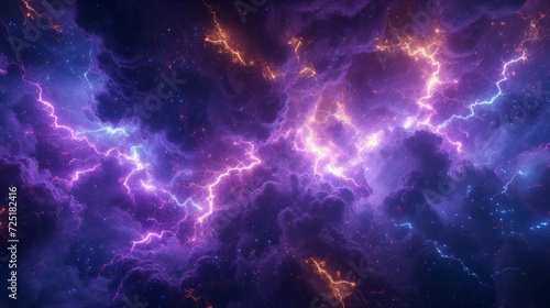 Electric force of nature: powerful lightning strike and energetic sparks against a dark sky. Abstract background of lightning strikes.