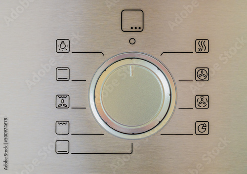 electric oven retractable control dial close up