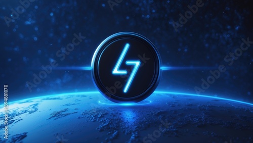 Electric power button on a blue gradient Earth planet.