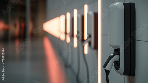 Electric Vehicle Charging Stations: Sleek design, modern convenience, and sustainable energy meet in this row of charging points. Powering the future of transport.