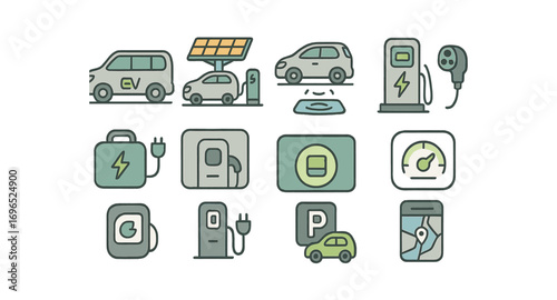 electric, vehicle, charging, car, battery, icon, flat, energy, transport, green, eco, drive, sustainable, station, power, plug, charge, mobility, technology, automotive, plug-in, clean, illustrated, renewable