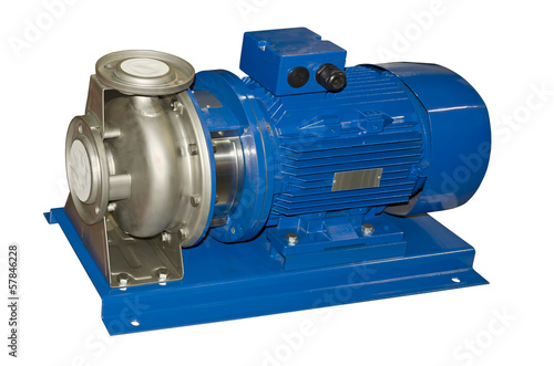 isolated, motor, pump, white, blue, background, water, industry, home, electric, equipment, plumbing, pressure, tool, pumping