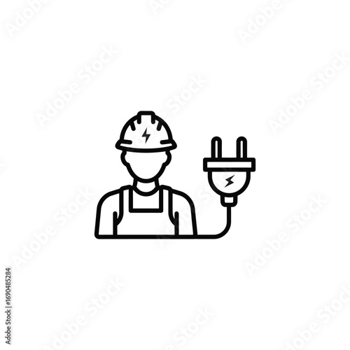 Electrician with safety helmet and electric plug isolated on white background professional worker concept