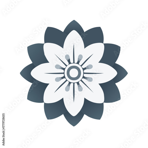 flower, floral, blossom, flower petals, design, graphic, illustration, vector, icon, symbol, motif, ornament, stylised, abstract, geometric, minimalist, modern, elegant, decorative, ornamental, symmetric, symmetry, layered, grey, grey, monochrome, monochromatic, serene, tranquil, calm, peaceful, nature, plant, digital artwork, artistic, pattern, beauty, spa, wellness, yoga, meditation, luxury, sophisticated, shape