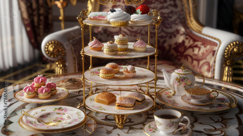 Elegant Afternoon Tea Set With Assorted Pastries
