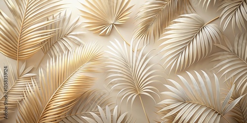 Elegant Arrangement of Golden and Cream Palm Fronds on a Neutral Background, Ideal for Home Decor and Design Inspiration