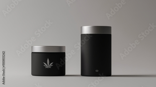 cannabis, container, black, silver, minimalist, sleek, hemp, modern, premium, elegant, natural, herbal, branding, stylish, compact, functional, luxury