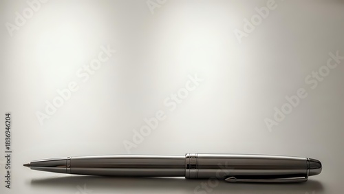 Elegant black ballpoint pen lying horizontally on clean white surface with soft gradient background for professional business writing needs.
