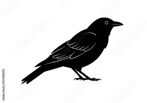 Elegant Black Crow Silhouette Bird Illustration on White Background