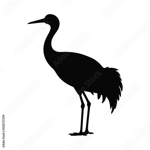 crane, silhouette, bird, wildlife, animal, nature, graceful, elegant, standing, white, background, isolated, black, and, vector, graphic, icon, symbol, minimalist, clean, outline, profile, long, neck, leg, feathered, tail, avian, ornithology, zen, peaceful, serene, elegance, creature, species