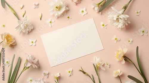 blank, paper, sheet, card, copy, space, narcissus, elegant, floral, template, design, branding, stationery, creativity