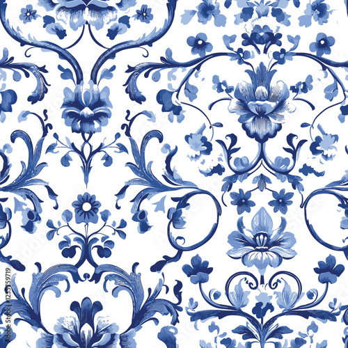 Elegant Blue Floral Pattern - Vintage Porcelain Inspired Design