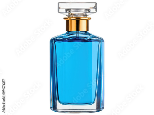 Elegant Blue Perfume Bottle with Gold Accents on Transparent Background for Lifestyle and Product Photography